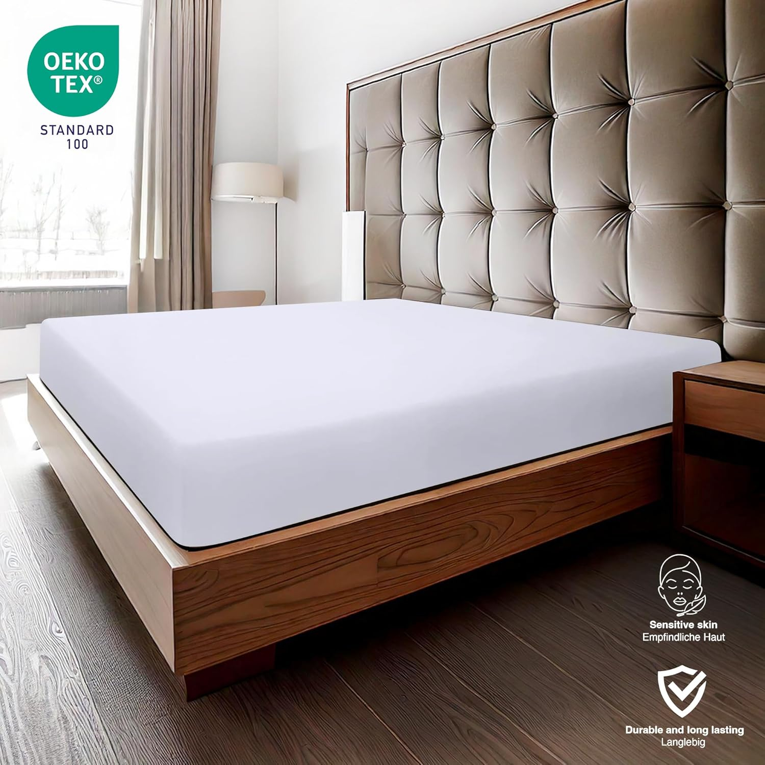 Cearceaf cu elastic 180x200 cm , 35 cm inaltime, microfibra periata, Oeko-Tex, anticuta, pentru sa