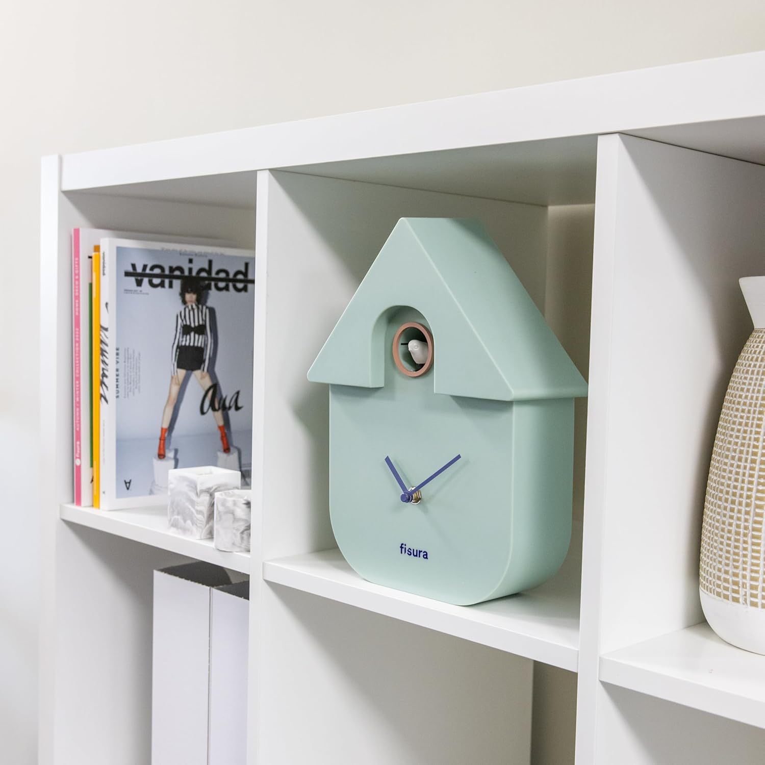 Ceas de Perete cu Cuc FISURA, Mint, Design Modern cu Pendul , Cadou Original, 21,5 x 8 x 41,5 cm,