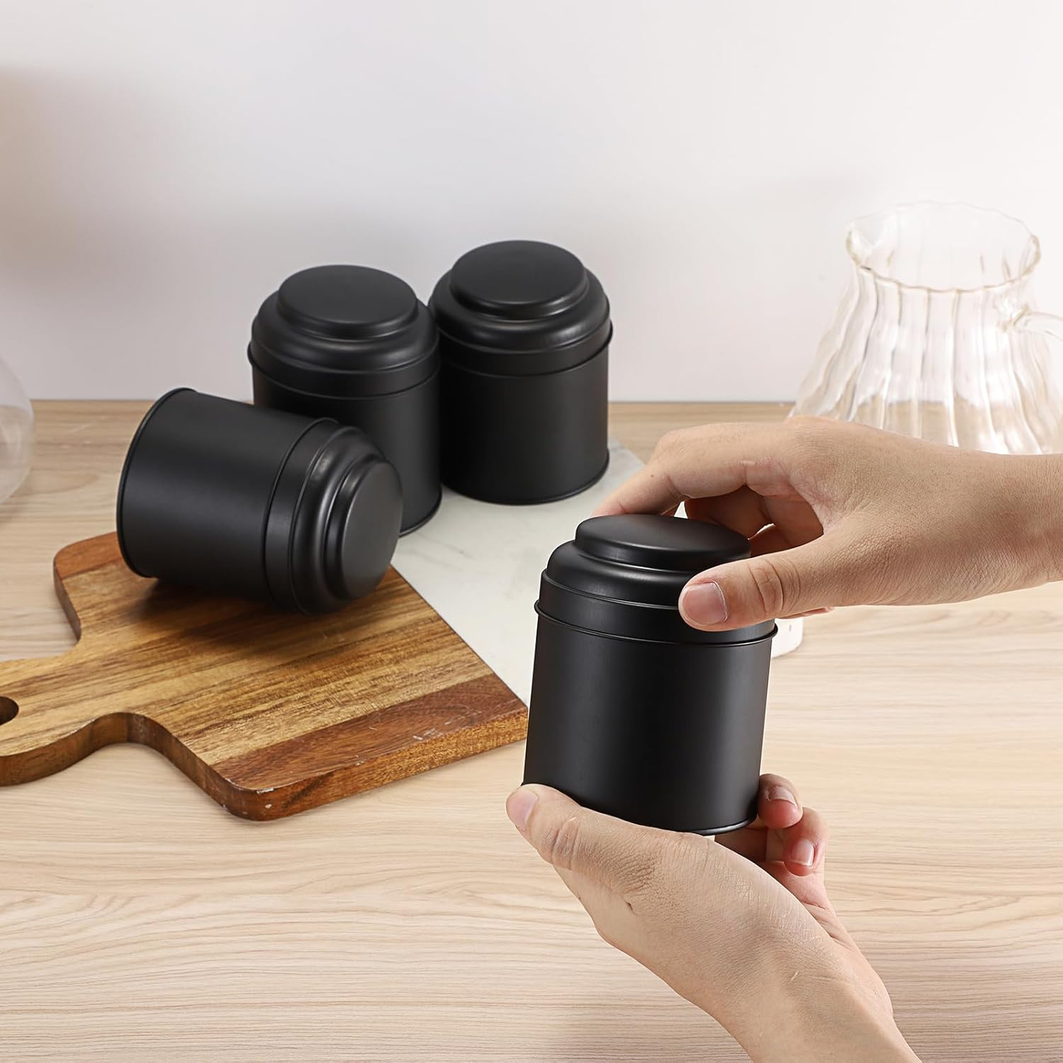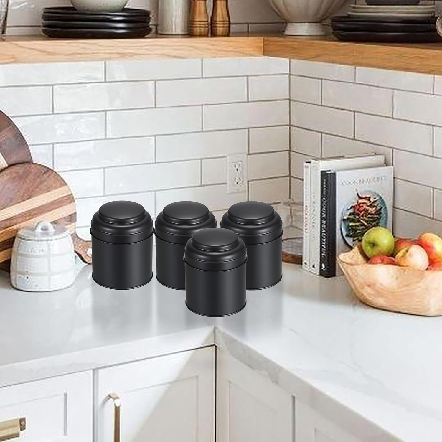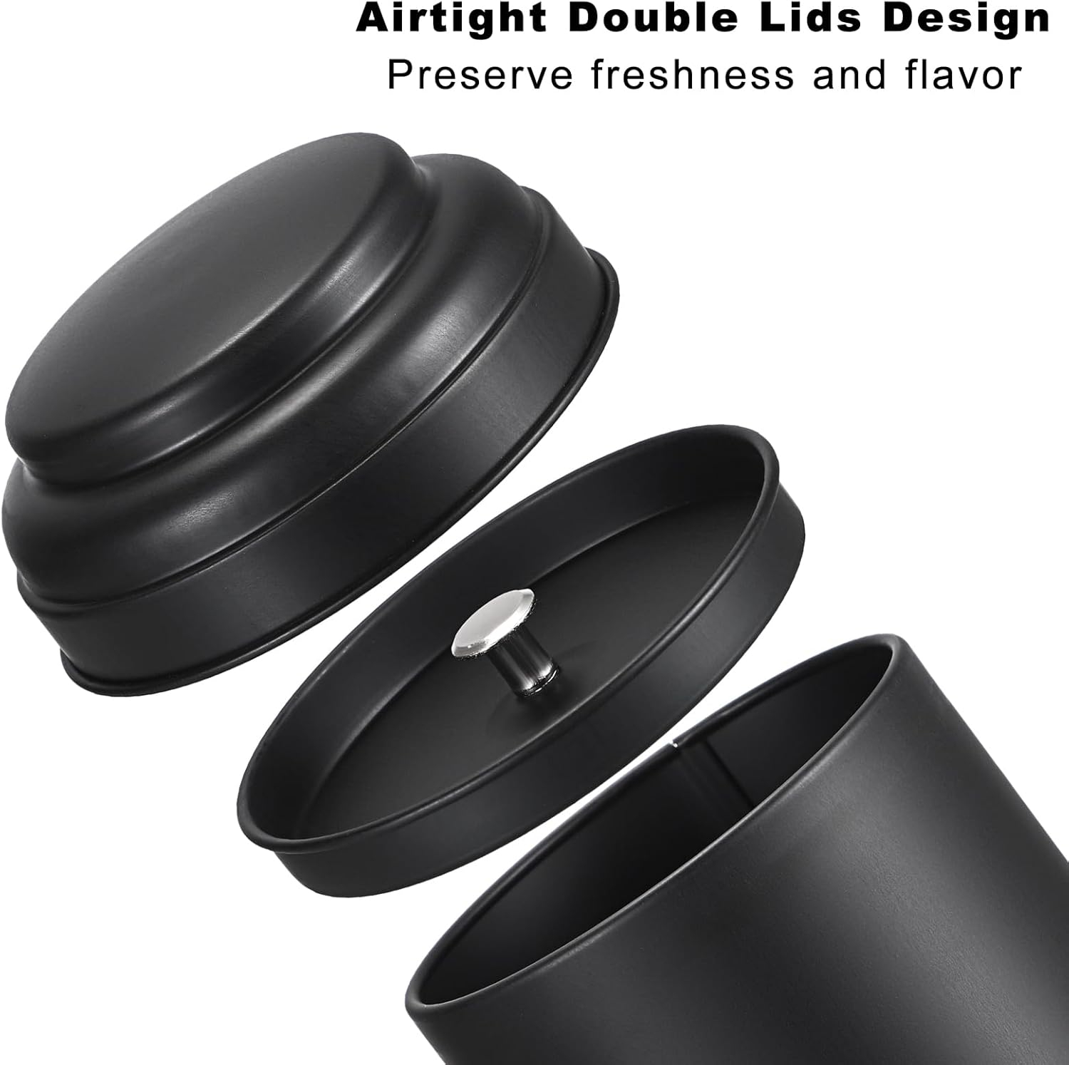 Set 6 borcane metalice IGNPION, 237 ml, capac dublu etans, ideale pentru ceai, cafea si condimente. Design compact, durabil si perfect pentru organizarea bucatariei.