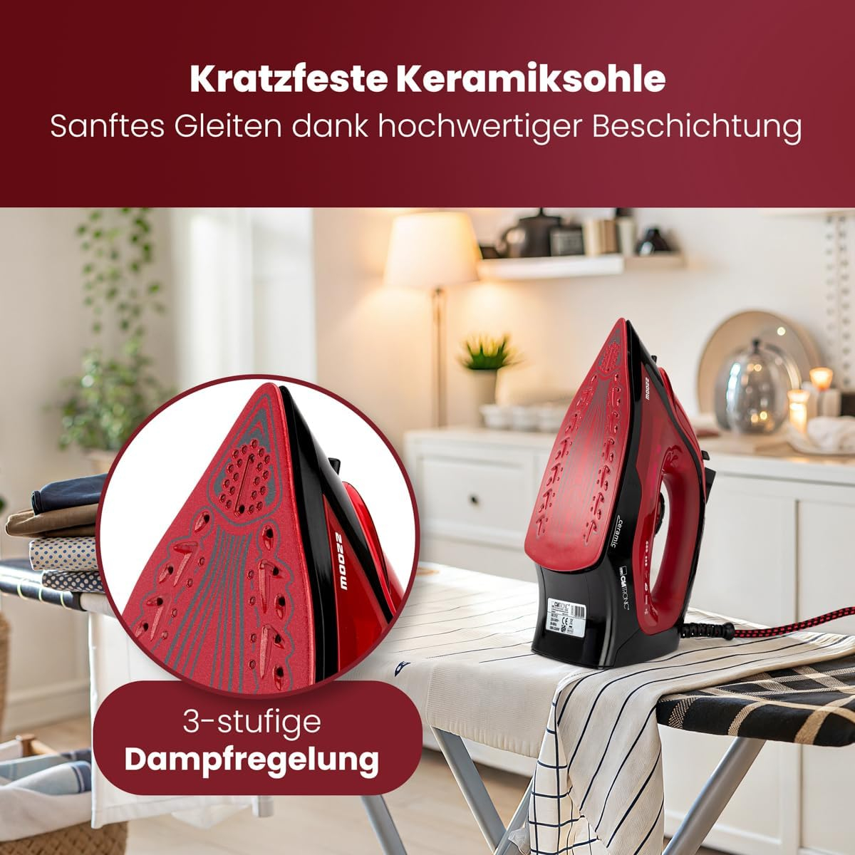 Fier de calcat cu abur 2200W, talpa ceramica, rezervor 250 ml , Clatronic DB 3752, anti-picurare