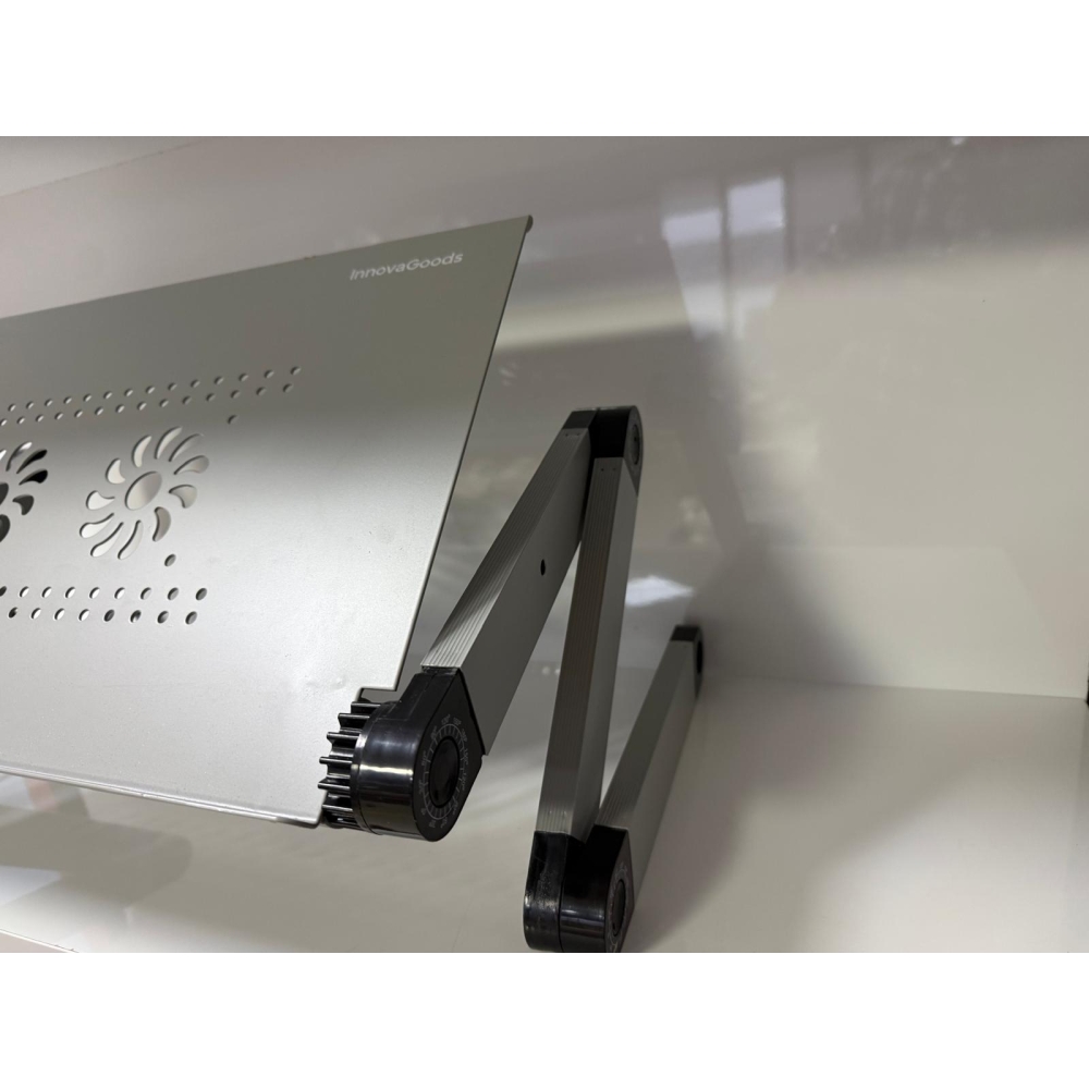 Este o masă portabilă reglabilă cu design pliabil și multi-poziție, perfectă pentru utilizare cu laptopul, dar și pentru citit, mâncat, desenat sau ca suport pentru tablete, cărți și alte dispozitive. Materialul din aluminiu ușor dar durabil asigură stabilitate și ventilație pentru laptop, reducând riscul de supraîncălzire.