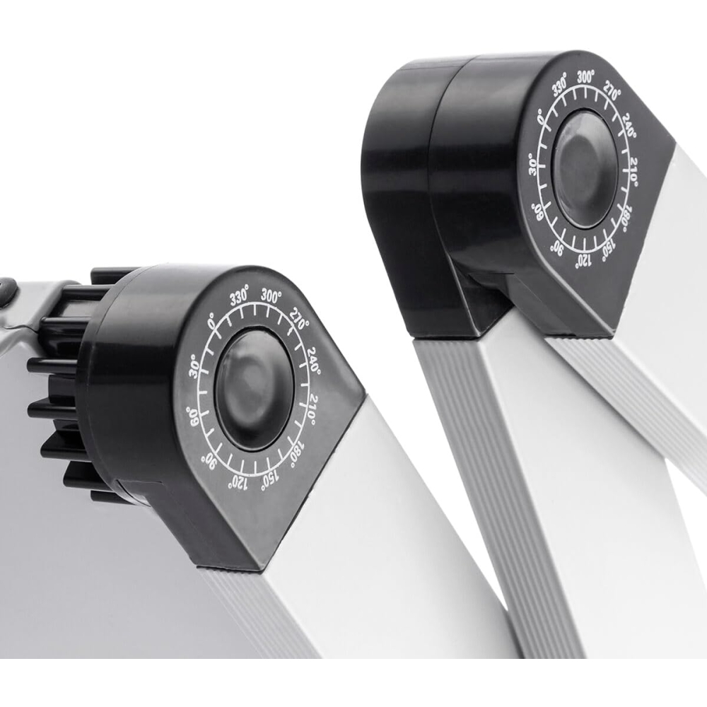 Flexibilitate maximă de utilizare – cele două picioare articulate la 360° te ajută să reglezi atât înălțimea, cât și unghiul mesei, oferind poziționări multiple (pe podea, pe scaun, în poziție relaxată sau în picioare).